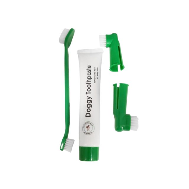 The finger brushes are gentle on gums and easier for dogs to accept, and the angled toothbrush is great for hard-to-reach areas or for dogs who get nippy.