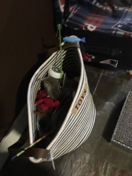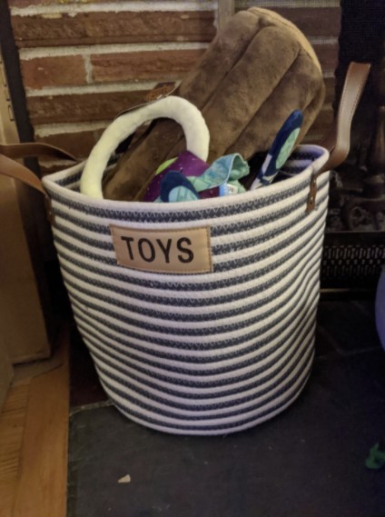 Of course the pet toy basket says “Pet Toy” on it, but this basket can be used for children’s toys, books, towels, anything you need to keep handy, but off the floor. A great basket of my cats' toys.