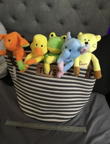 This basket is big enough to fit a ton of toys. It looks great wherever you need to put it.