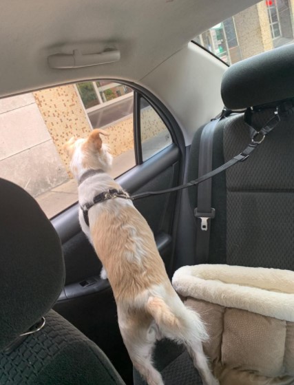 Like a leash, our seat belt has an adjustable leash with buckle that clips to secure snugly to any headrest in a car. When secure, the clip on the leash snaps to any dog collar you have on your pet.