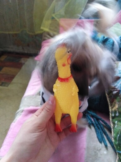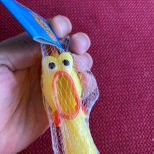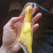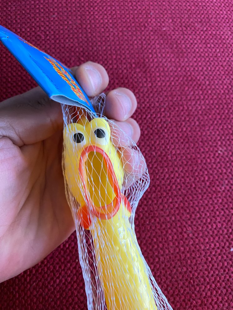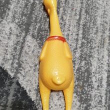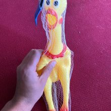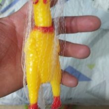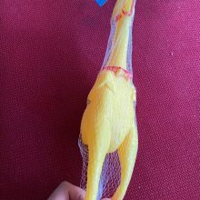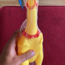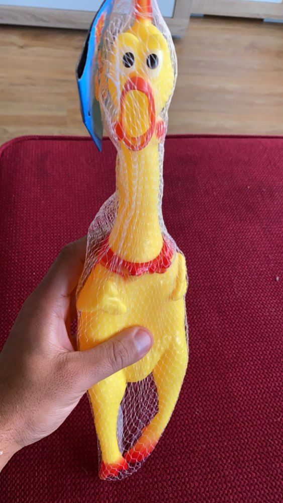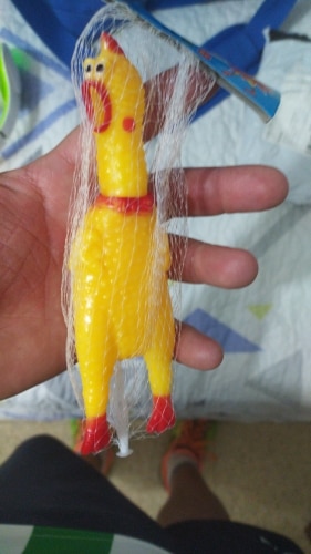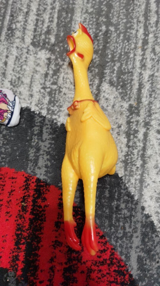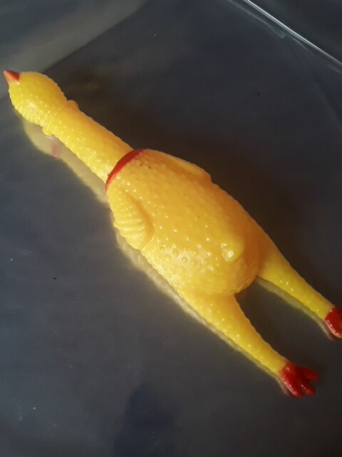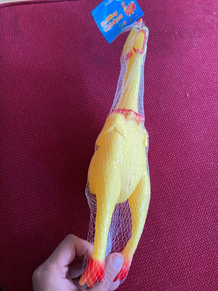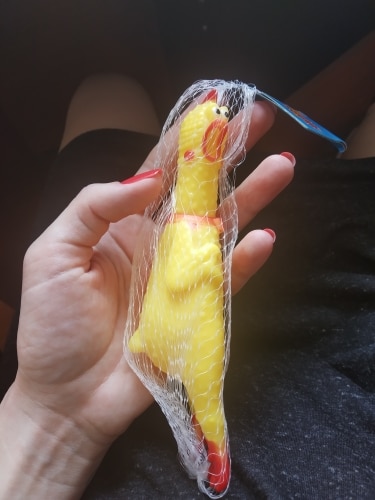 Made of 100% non-toxic rubber, our chicken measures 11 in (31cm) in length, our loud, fussy toy can go with you from parties to concerts and so much more for a screamin’-good time.