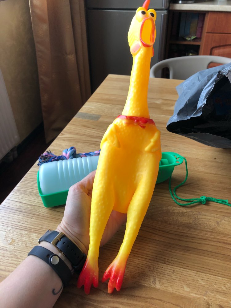 I love this chicken it's perfect, a sidenote, the head and neck come off of the body but they attach back on quite easily so you can rotate the head as you please