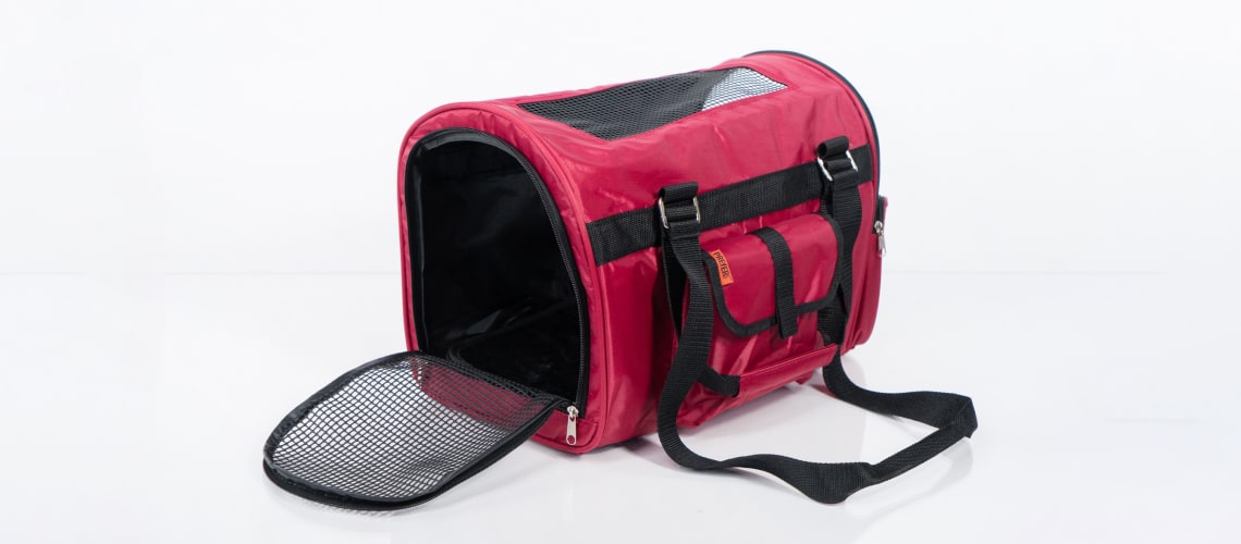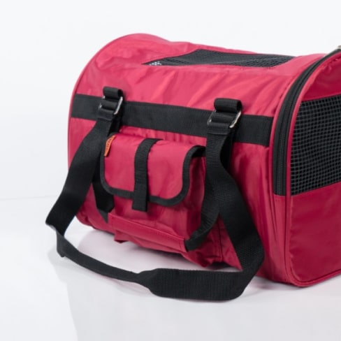 This pet carrier is compact and covers the basic needs for pets such as good ventilation and feeding windows with included interior detachable harness hook for the rowdy ones and a large secured pocket for extra goodies. This lightweight and comfortable carrier can be carried by hand or slung over a shoulder.
