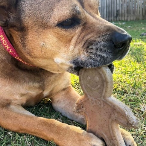 The Gingerbread Man Chew Toy will suit your dog perfectly: it’s designed for dogs 15-80 lbs/7-36kg. Dimensions: 5″ long, 4.5″ wide, 1.5″ thick. 5.0 ounces.