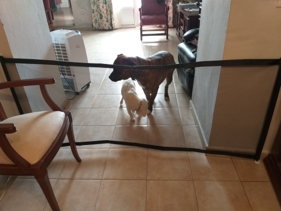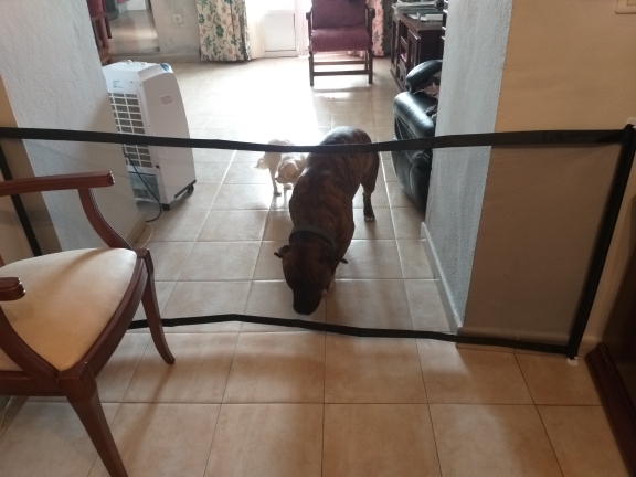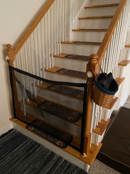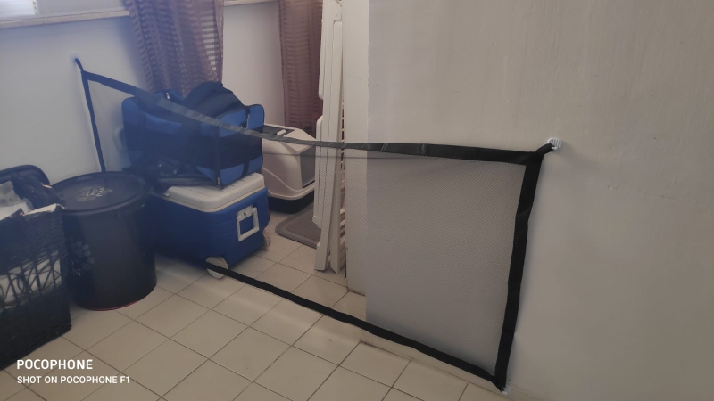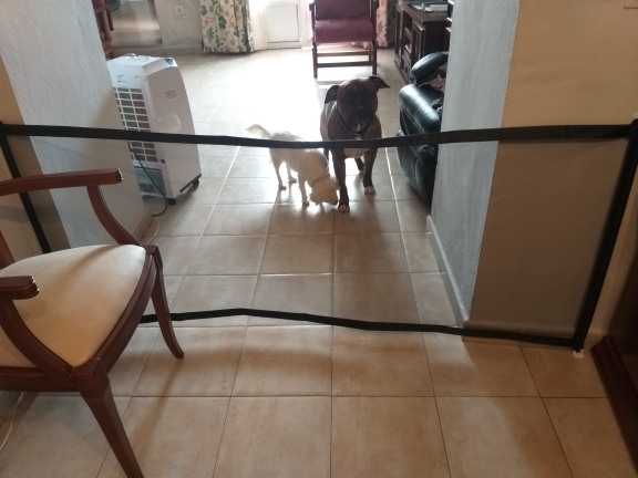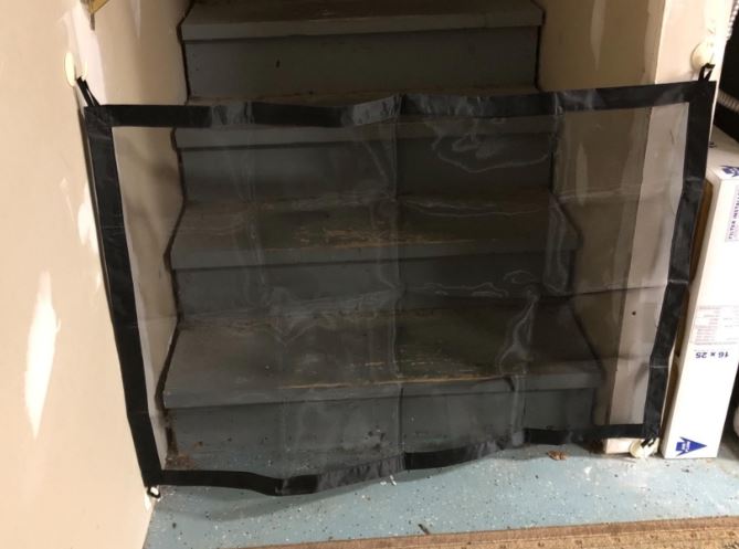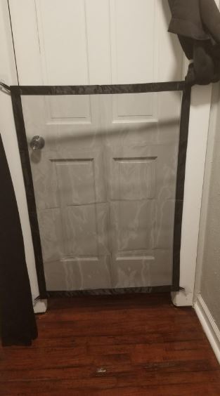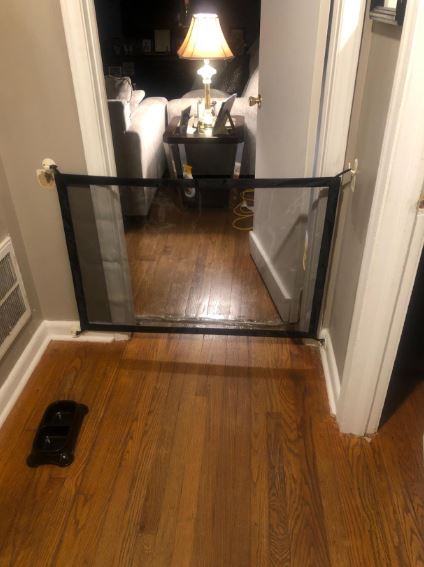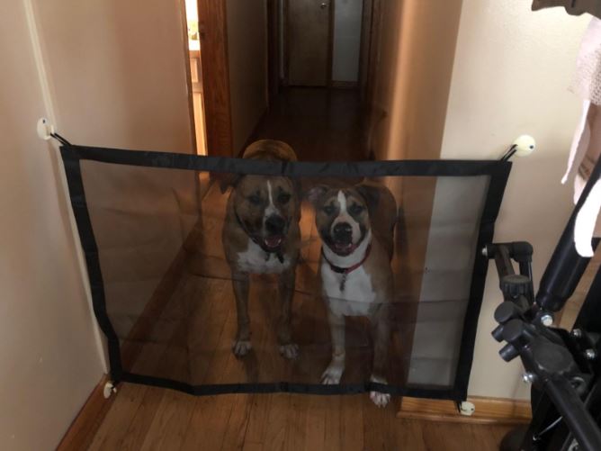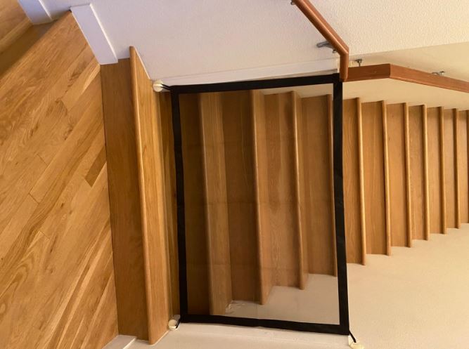 Well, here’s one way to keep your pooch in place. With no running around the house or walking into the room of construction. Our Portable Safety Net is the easiest and most convenient way to keep your dog from freely wandering around the house. It’s perfect for doorways, between walls, or even stairwells. And when it’s time to let your dog run free, simply move the net.