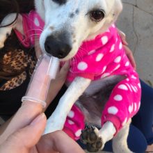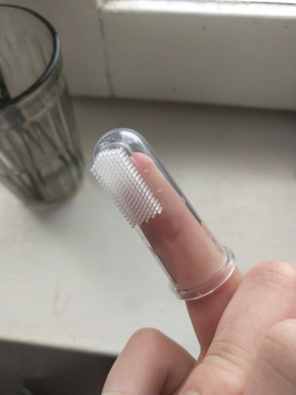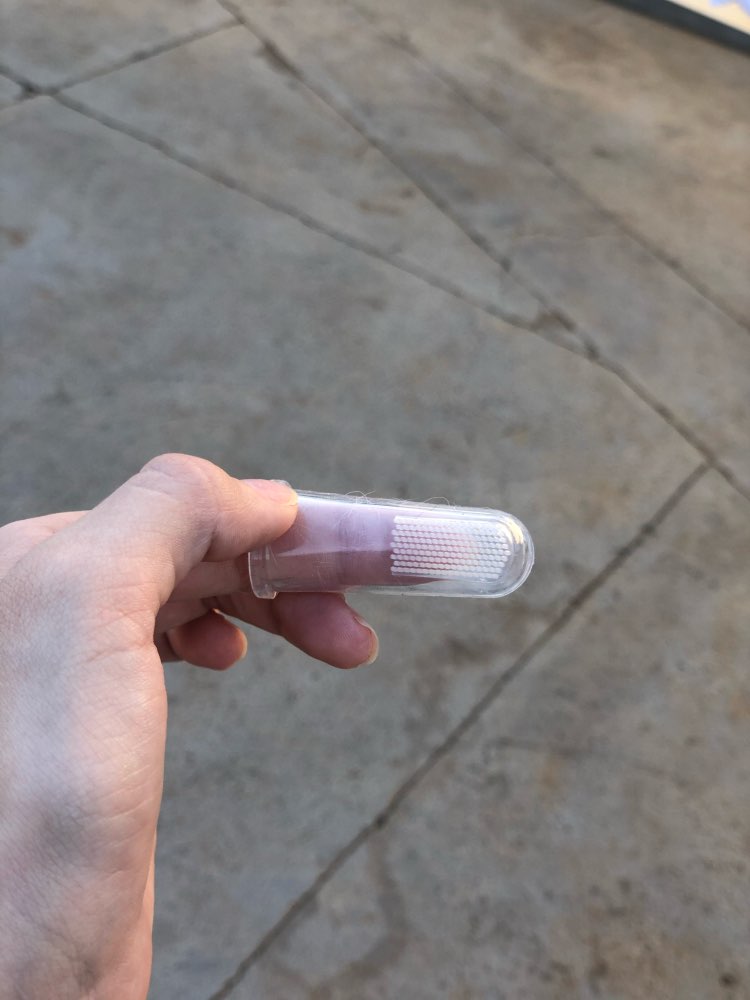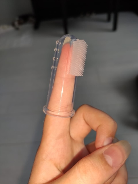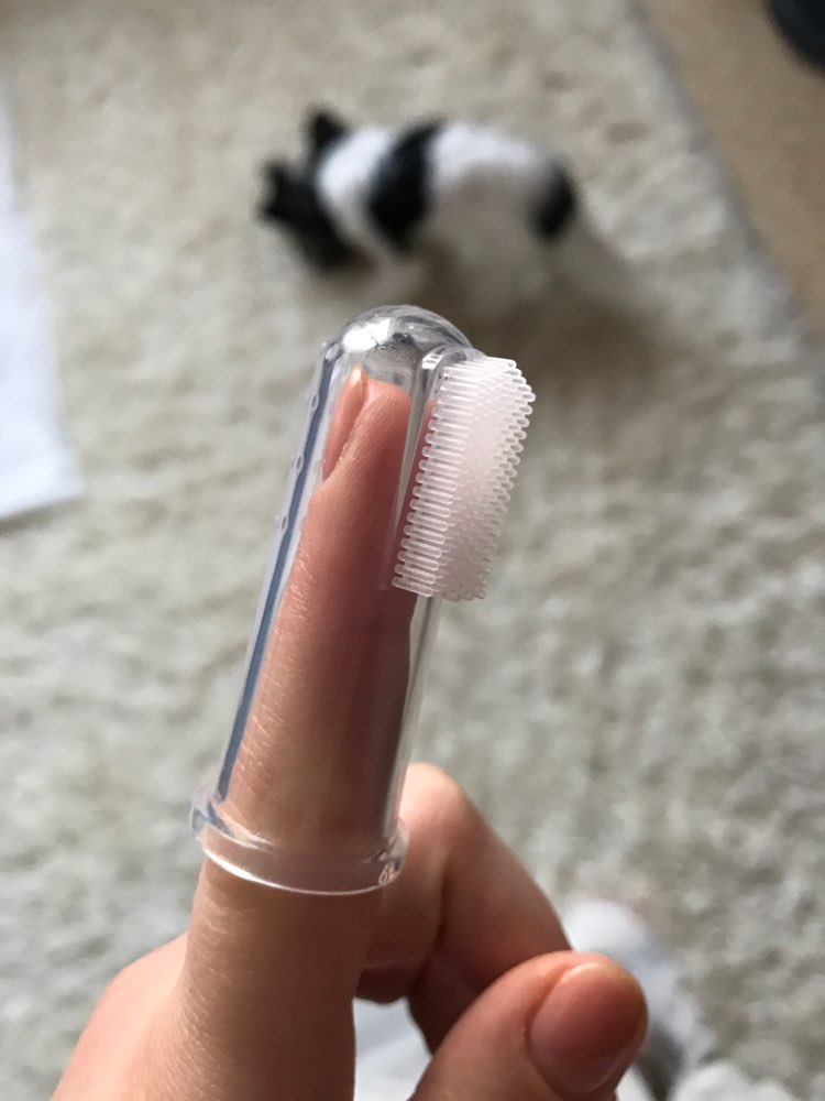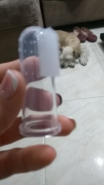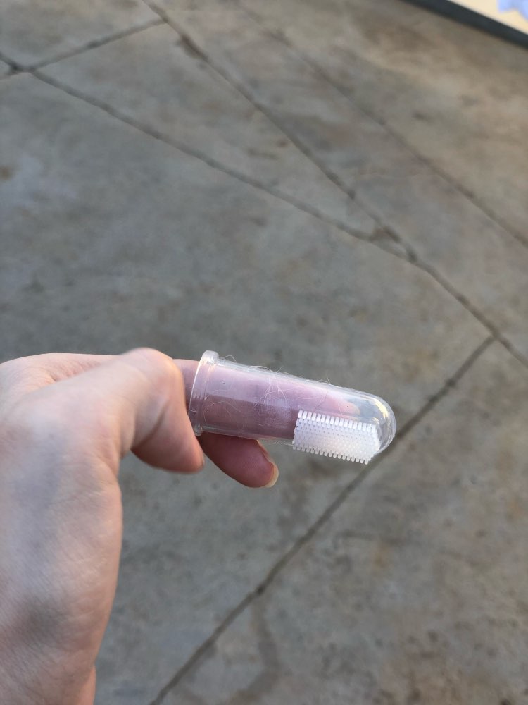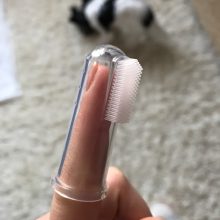 My dog actually let me put this finger toothbrush with toothpaste in his mouth. That’s a first. So I love this product. Now I don’t feel so guilty about not brushing my dog’s teeth! The toothbrush stays on my finger well and the toothpaste must taste good to my dog. He seemed to like it a lot. Yay!!!!!