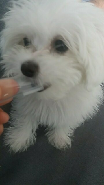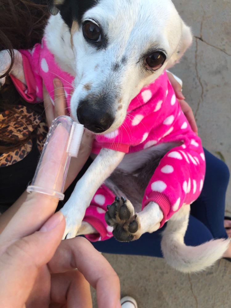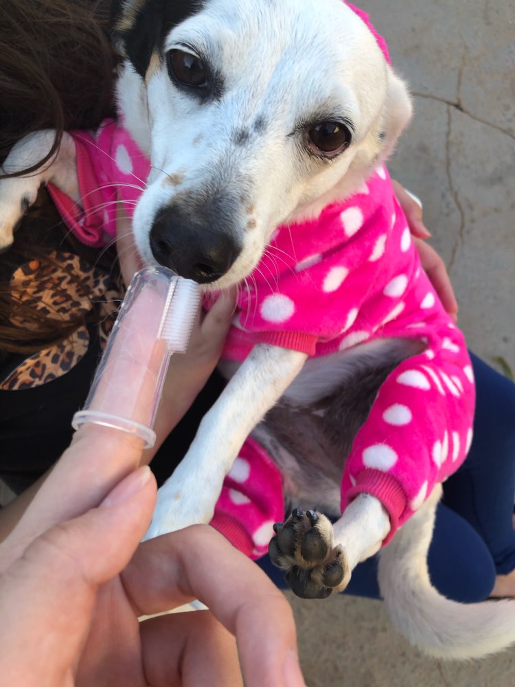 My dog actually ALMOST likes getting her teeth brushed with this!!!