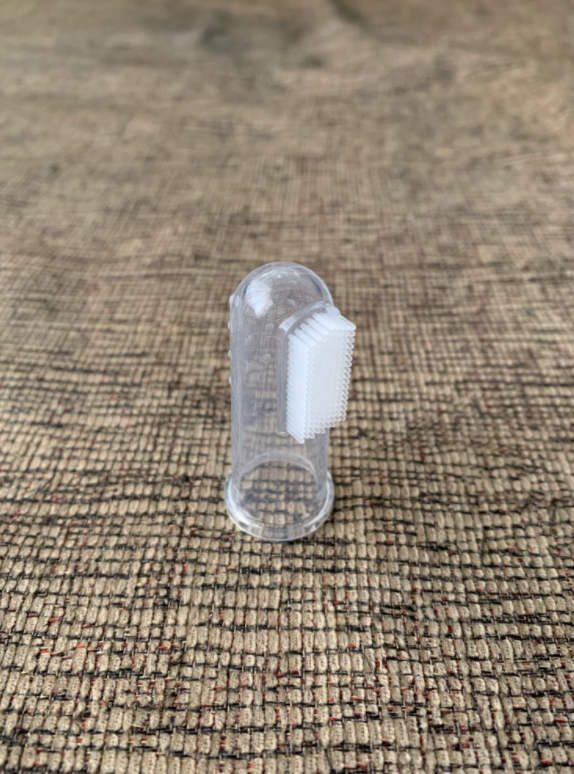 My golden-doodle puppy is a voracious chewer and the finger brush is just what he needs to hold up to his sharp baby teeth. He loves the flavor of the toothpaste and looks forward to “brushing time”!