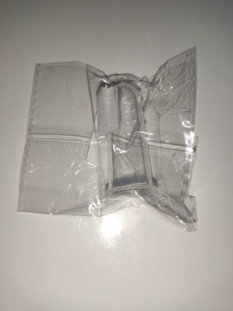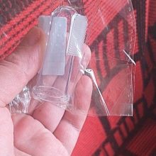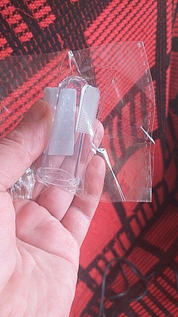 Found that fits any finger, is good for brushing teeth yes have buy a toothpaste dogs now, is amazing, the bristles are soft and not hurt the gums dog. Slow to arrive because of Corona