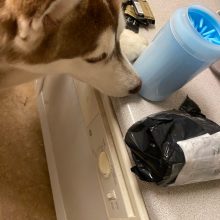 Pour out the used water, and flip the cleaner paw inside out to clean out.