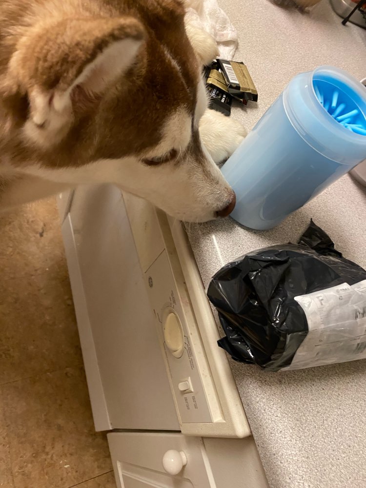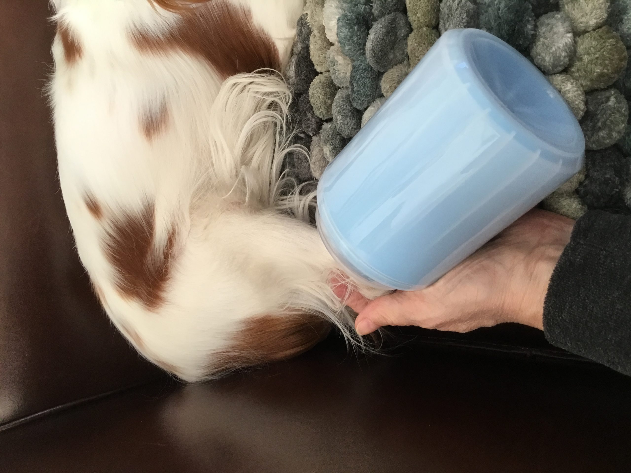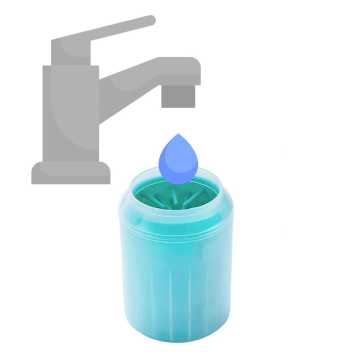Fill up one paw cleaner with warm water (soap can be added too if desired).