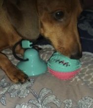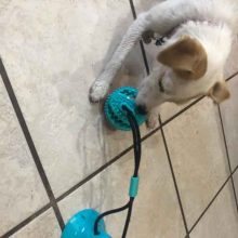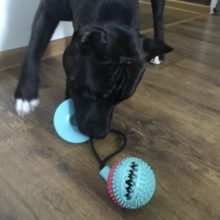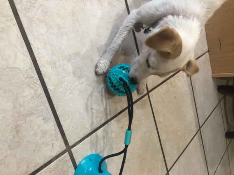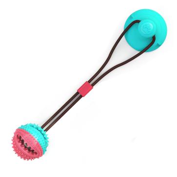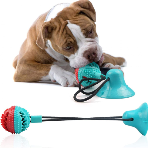 With a spiky surface for your dog to gnaw and slobber on, the ball of this toy is irresistible — and you can take the fun factor to an even higher level by filling it with dog food or a snack. Watch in delight as your dog exercises his or her teeth and mouth biting away to release the niblets. Our ball and suction cup are both made of non-toxic rubber that is safe for your dog to chew on and bite, while the string is made of thick cotton-fiber rope that won’t come apart with chewing.