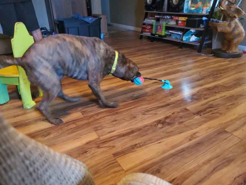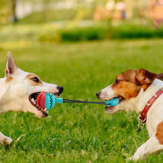 With our tug-of-floor toy, all you need to do is stick the suction cup to a solid, smooth surface to lock it down. The stringed spiky ball will then be free for your dog to chew and pull on for hours of enjoyment. If you have more than one dog, you can watch your pooches fight over the toy, or if it’s just you and your dog, you can remove the suction cup and hold that end in your hand while your pooch tugs and bites away at the serrated ball.
