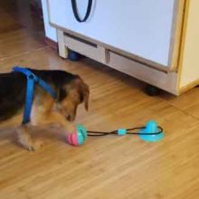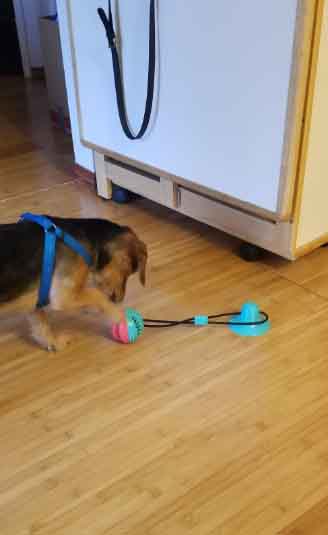 I have a 2 yr. old Toy Poodle who chewed through the rope in about a week. I do not recommend this toy for “AGGRESSIVE” chewers! The ball is durable & the suction cup is GREAT! This just didn’t work for us.